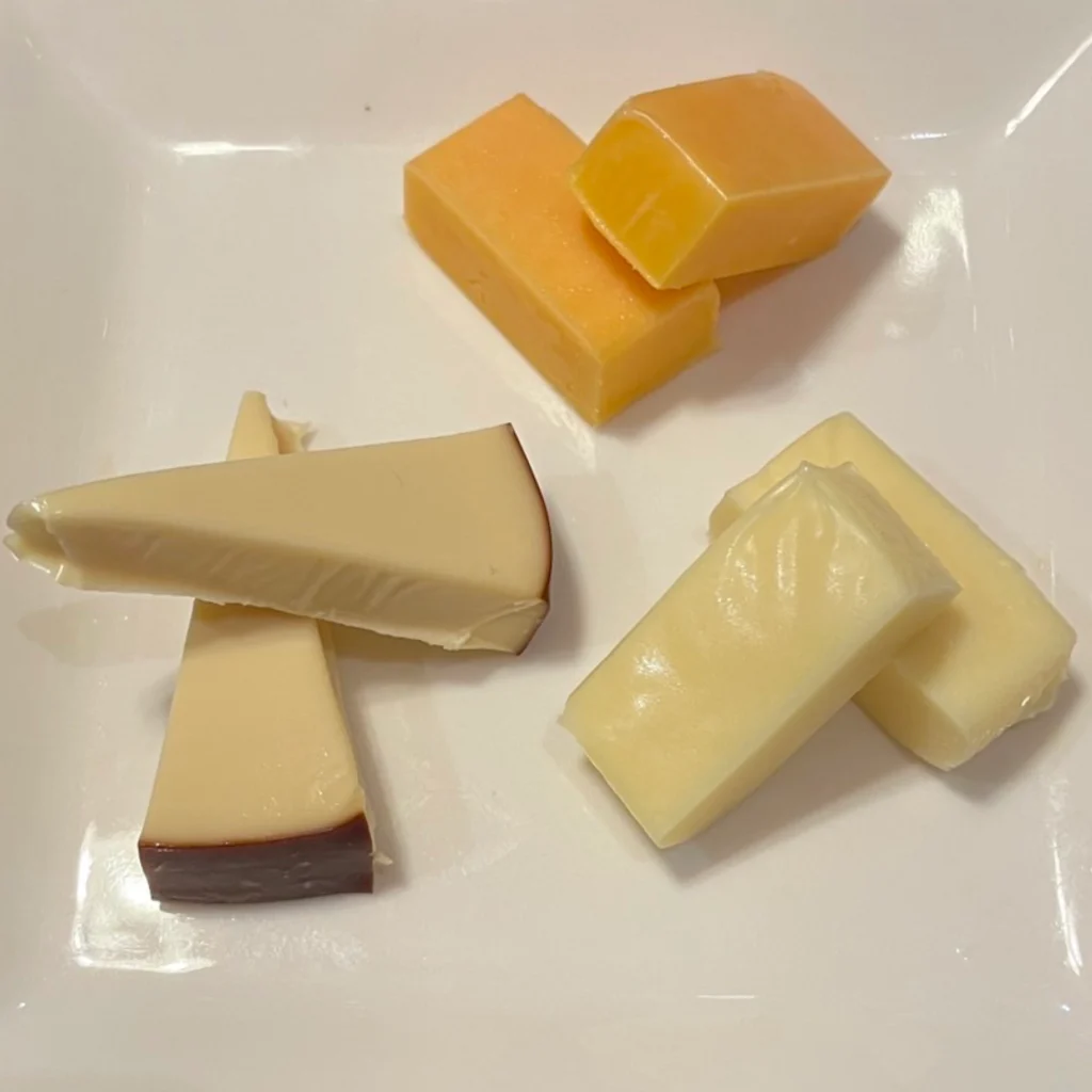 チェダー、ゴーダ、パルメザン、スモークなどから厳選して3種類お出しします。