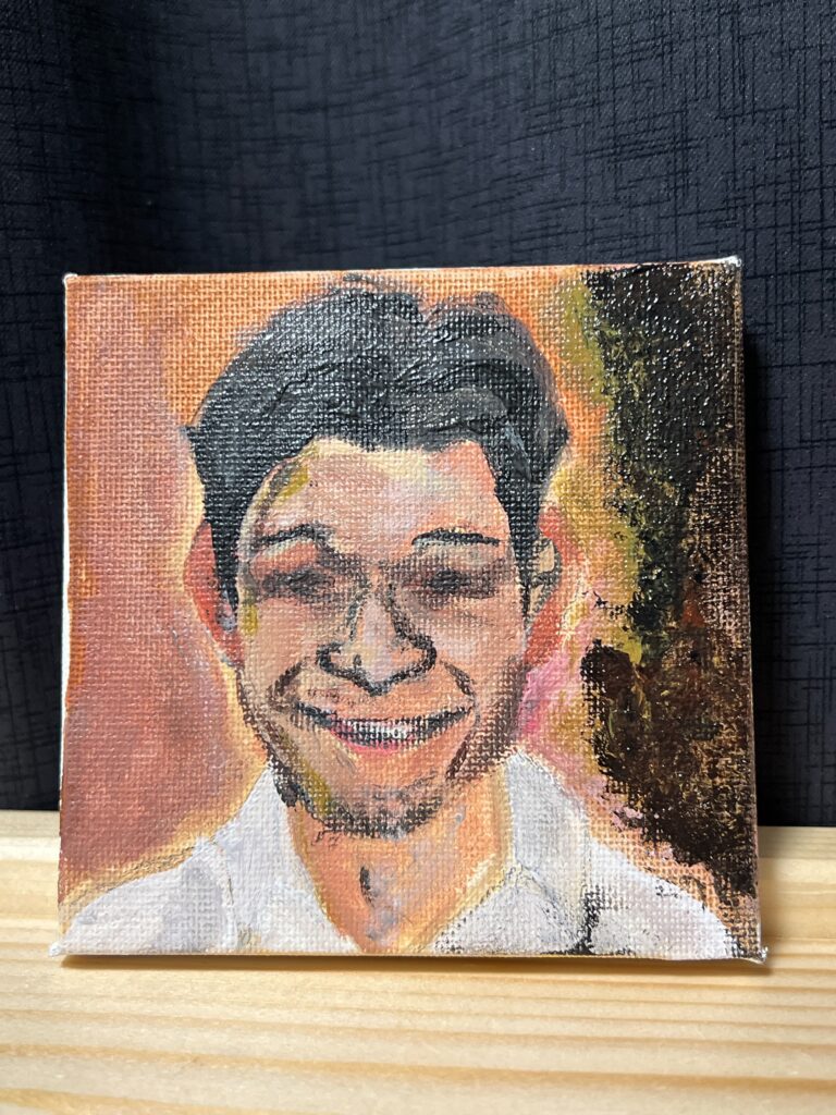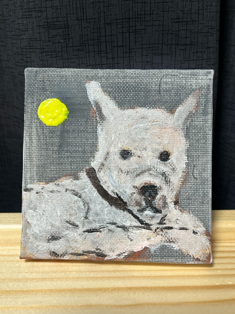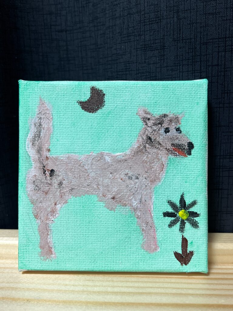 お祝い1杯につき1回引けるヤジくじの特典で用意した僕が初めて挑戦したアクリル画「室内で雑種犬」シリーズやその他グッズも、