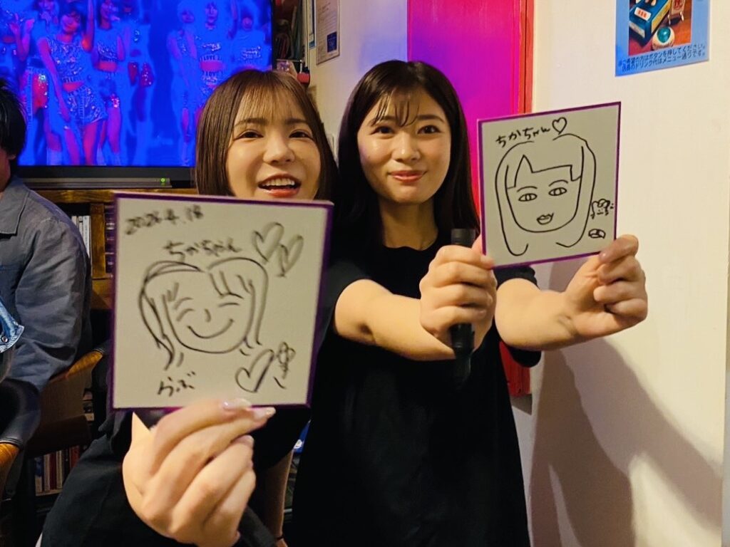 抽選会では、ここでしか手に入らないレアな私物グッズが見事当選して飛び跳ねて喜ぶ方がいらっしゃったり、真衣店長が描いた(絶妙に似ている…!?)衝撃の似顔絵に大興奮したりと、笑いと歓声が絶えない賑やかなひとときでした。