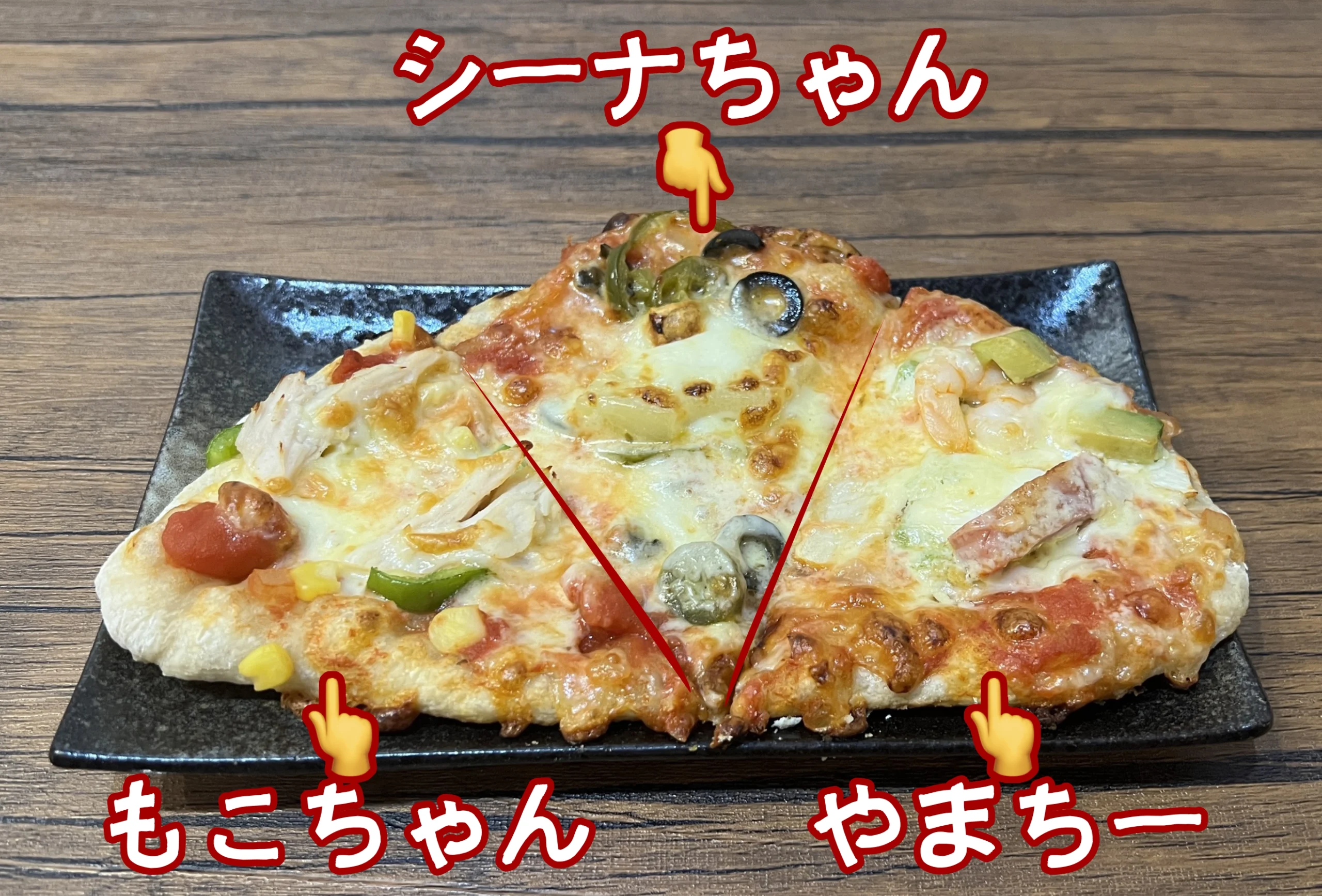 キャストの3人それぞれが考案したピザが1度に3種類楽しめるスペシャルピザです。