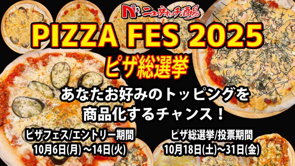 毎年大好評で盛り上る「PIZZA FES」を今年も開催します!PIZZA FES期間内は、組み合わせ自由でトッピングが選べます! お好みのトッピングを、下のトッピング一覧表からお選びいただき、「合計8点」になるようお選び … 続きを読む PIZZA FES 2025