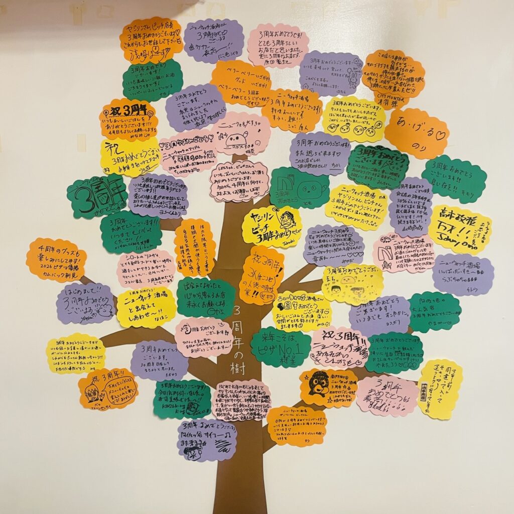 3周年のお祝いメッセージで集まった『周年の樹』も満開となり、みなさんの熱い愛を感じさせていただきました。