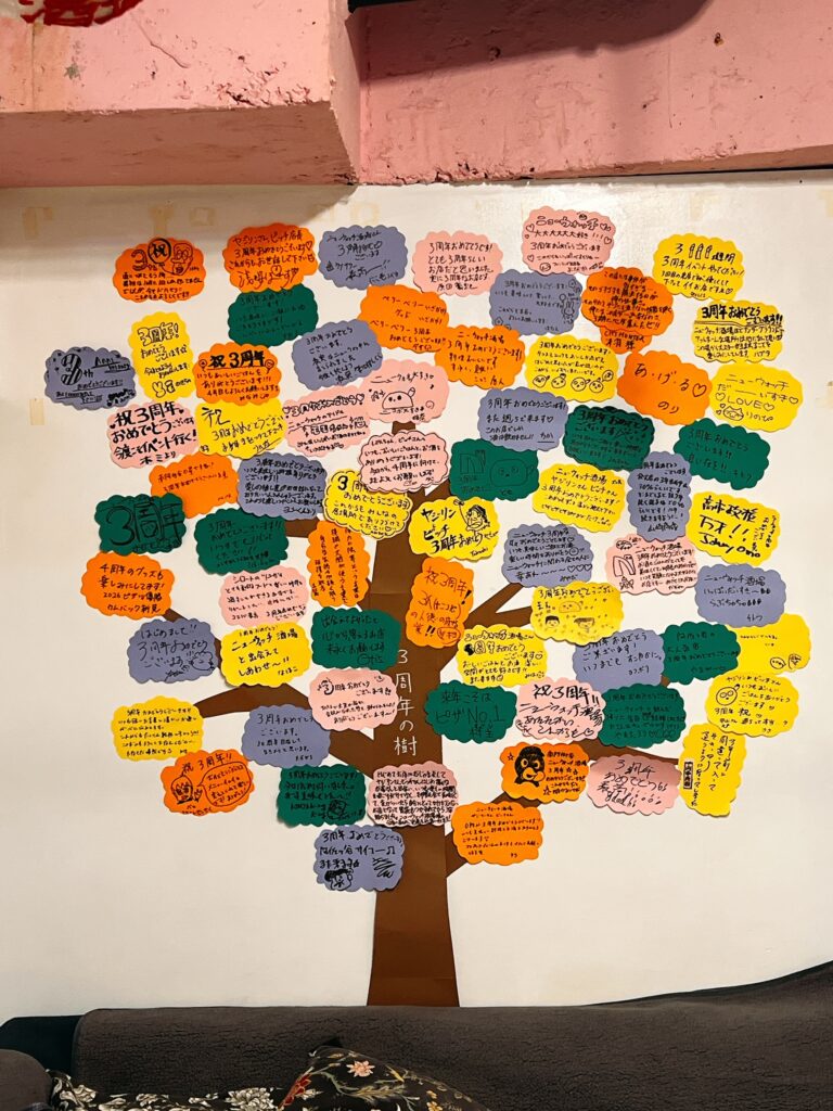 3周年のお祝いメッセージで集まった『周年の樹』も満開となり、みなさんの熱い愛を感じさせていただきました。